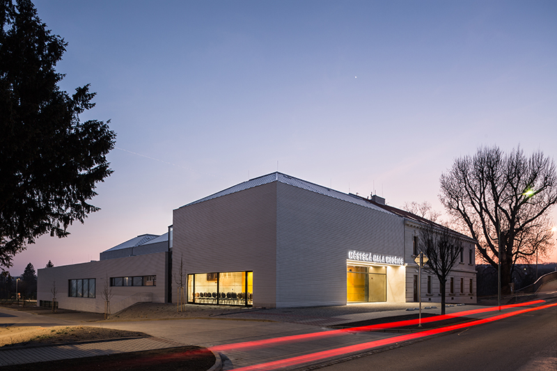 U modřické víceúčelové haly porotu oslovilo, jak centrum svojí velikostí a měřítkem zapadá do městské struktury a dotváří prostor mezi stávající zástavbou budovy školy, restaurace a železnicí.